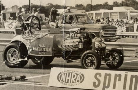 Notes: They were a force in the A/R class, employing a '58 Olds engine. At Green Valley Raceway, they won their class and took Middle Eliminator honors at the AHRA event on June 18/19. Photo: Early Drag Racing Photos, p. 26, in Jalopy Journal, The H.A.M.B. - MB |