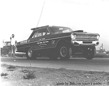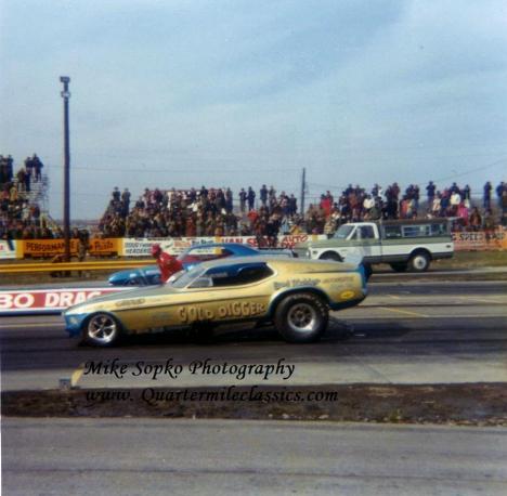 Notes: Gary Bolger and Dale Creasy were one of the teams picked to run the Coca-Cola Cavalcade of Stars funny car circuit. In mid-April, Gary pulled in to Atco for a best of three match race against "Jungle Jim" Liberman. Jim failed to show, so Gary was going to run a solo pass for the fans. Things didn't go as planned as coming off the line, he smoked only one tire, crossed into the opposite lane, and smacked into the guardrail. The car flipped, but Bolger was not hurt. The Mustang body was cracked, and the frame was bent, so the team packed up. As they were towing out, Jungle's rig pulled in without Liberman, as he failed to show. Bolger was at Englishtown in June for one of the Coca-Cola Cavalcade races. In the first round, his 6.72/201.79 lost to Roger Lindamood's 6.53/217. He got back into the show for the semifinal, where he was to race Lindamood again, but Roger broke, so Gary soloed with a 9.04. He was to race Dick Bourgois in the final that never happened due to rain. Another Coke race was run at Atco in July. At that event, Bolger's 6.74/197 beat Gordon Mineo's 7.06/198 in the opening round. In the semifinal, Gary shut down early with problems while racing Fred Goeske. Shortly after that, he showed up at Portland for the 32-car Coca-Cola Funny Car Championships. Unfortunately, his 6.63 in the first round, lost to Jerry Ruth's 6.49. On July 30, Bolger was at Edmonton, Alberta, for its Funny Car Spectacular race. An opening round 7.23/183.67 fell to Liberman's 6.66/193. He also lost in the opening round at Seattle for the Seafair Funny Car Championships when the car lost fire against Don Souter. In August, they were at Fremont for a Cavalcade race. In the first round, Bolger's 6.60 beat Lindamood's quicker 6.53, and in the semifinals, a 6.49 (Low ET) at 209.30 beat Lindamood again at 6.79. Gary went up against the "Sundance" Monza driven by Russell Long in the final. Long got out of shape and crossed the centerline while Bolger ran 6.60/216 for the victory. |