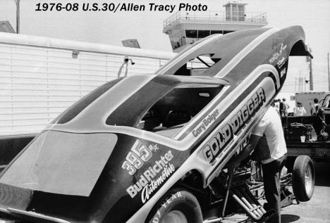 Notes: Gary was at Martin, Michigan, in August for the PHR Championships. The car broke in the qualifying round. Michael Beach photo from Martin, MI, 1976. |