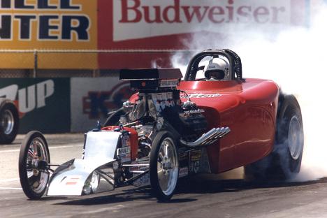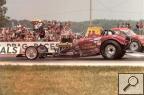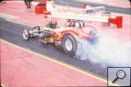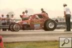 Notes: Danny didn't run at Pomona for the NHRA Winternationals, but in March, he was at Gainesville for the NHRA Gatornationals. His 6.34/224.27 qualified #8. In the opening round, his 6.43/216.55 defeated Terry Mullins' 6.50/218. In round two, he fouled and shut down against Brad Anderson. He was in Atlanta in April for the NHRA Southern Nationals. This was just an eight-car field, and his 6.46/216.97 qualified #6. A 6.57/211.56 in the opening round lost to eventual winner Don Gay Jr.'s 6.30/219. He went to Indianapolis at the beginning of May for the NHRA Division 3 opener. He qualified #5 in the eight-car show with a 6.40/222.49. Unfortunately, that set up a first-round meeting with low qualifier Vern Moats. Danny tried hard, but his 6.42/217.49 finished second to Moats' 6.37/220. His next stop was at Memphis for the NHRA Mid-South Nationals. He ran 6.40/218.71 in qualifying this time, which got him the #6 spot in the eight-car field. In round one, Danny improved to 6.34/217.07, but it wasn't enough to beat Austin's 6.32/223. He won the second NHRA Division 3 race held at Union Grove on June 5. Not only did he win, but he also qualified #1 and set Top Speed and Low ET. He got the pole with a 6.33 (Low ET) at 220.22. In the first round, his 6.34/220.58 (Top Speed) beat a fouling Al DaPozzo. In the semi-final, a consistent 6.35/220.04 beat Moats' 6.47/218. He faced Don Defluiter in the final, and another 6.34/220.58 got the victory over Don's 6.47/214. Original pre-Internet draglist entry. Listed times from The Drag Racing List, Winter 1988, Volume 3, Number 3. Photo from Columbus 1988. |