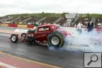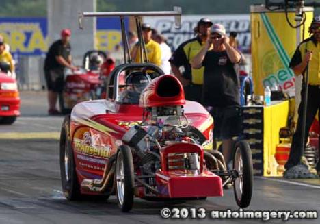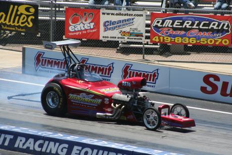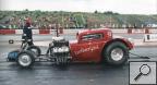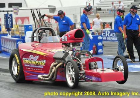 Notes: Qualified #6 at the Gatornationals at 6.027/229.94. At the NHRA Southern Nationals, Townsend's 6.12/228.71 qualified #8. In the first round, he improved to 6.07/229.70 while beating Jerry Gulley. But an even better 6.04/228.83 in round two lost to the race's eventual winner Pat Austin, at 5.98/233. At Brainerd, for the NHRA Northstar Nationals, a 6.23/224.43 qualified #4. In the first round, his 6.21/224.71 beat Tony Bartone's 6.25/224. In round two, a 6.18/226.70 stopped Corky East's 6.27/223, and he continued to improve in the semifinals, where he ran 6.16/227.56 to beat Austin, who smoked the tires and shut off. He faced Chuck Cheeseman in the final and despite improving to his best of the weekend, a 6.15/226.52, he lost to Chuck's quicker-leaving 6.16/219. Shortly after that, he was at Indy for the NHRA US Nationals. Danny's 6.12/230.53 qualified #9. Unfortunately, he lost to Frank Manzo in the opening round. Next stop was Maple Grove for the NHRA Keystone Nationals. There, his 6.03/232.49 qualified #4. He stayed in the 6.0s throughout eliminations. A first-round 6.07/229.94 beat Bob Gottschalk's 6.23/219, and he had a close race with Dick Bell in round two that saw Danny's 6.05/230.41 drop Dick's 6.07/231. But a 6.08/230.17 in the semifinal lost to Cheeseman's 6.02/231. Danny qualified #7 at Topeka for the NHRA Heartland Nationals with a 6.05/232.01. An opening round 6.08/229.53 advanced when Gary Rettell fouled, and in the second round, Mike Andreotti also fouled against him. This time, Danny coasted through at 23.55/61.86. He ran his best of the weekend, a 6.03/231.12 in the semifinals, but it wasn't enough to beat Pat Austin's similar 6.03/231. Photo from 1991 Division 3 Points Meet, Martin, MI. |