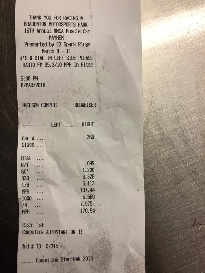 1/4 Mile: 7.580 ET, 182.05 MPH |