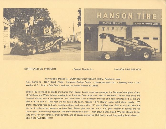 Notes: Finished #2 in NHRA Division 5 in 1983. |