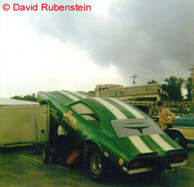 Notes: Match racer. Note the Mustang's roof scoop. I'm sure it's actually for rollcage clearance. A common feature on 70s funny cars. |