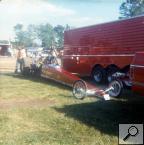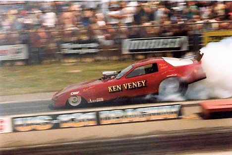 Notes: Second quickest at Indy only to Prudhomme's unreal 5.63. Second fastest that year only to Billy Meyer's 254.95 (if you discount a questionable 255 from Prudhomme at an AHRA race). The Indy 254.23 on September. 4, 1982, was the third entry in the Crane Cams 250 mph Club for Funny Car. | Ken made his debut in fuel Funny Car at Englishtown in July for the NHRA Summernationals. He knew his stuff as he qualified #11 with a 6.05. Unfortunately, he slowed to a 6.36 in the first round, that lost to Tom Anderson's 6.34. In August, he was at US 131 Martin, Michigan, for the PHR Championships. He lasted until the semifinals when his quicker 6.03 lost to Raymond Beadle's 6.07 in the "Blue Max." |