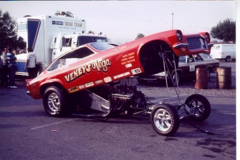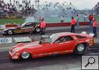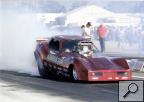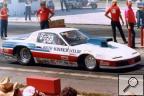 Notes: Two cars this year. Ken began with the Corvette (which crashed at Columbus), but ended with this Omni Charger. Vette went as quick as 6.50. Confirmed 6.74 in the Omni. Did Ken get a 223.32 mph run this year? Photo from 81 Nationals. |