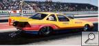 Notes: Doug Thorley's new 1968 Corvair, Logghe Chassis, Fiberglass Trends one-piece flip-top Corvair body, Al Bergler aluminum. I think Watson paint, Kelly lettering. This car replaced Doug's '67 Indy winner. Dick Bourgeois and Earl Wade took the car on tour during the summer of '68. On a Sunday night at Motor City Dragway, Dick ran a 7.57 for Low ET over Lew Arrington's Brutus, Larry Reyes in the Super Cuda, and Don Gay in his rainbow Firebird. In '69, the Corvair body was replaced with a Javelin body but continued with the blown 490 Chevy and ran the Coke tour. | Bourgeois and Wade were at Carlsbad on February 25 for the South Coast Funny Car Championships. A first-round 8.34/171.42 lost to Gene Conway's 8.35/175 in the "Destroyer" Jeep. Dick ran a series of match races against Don Nicholson in March, but unfortunately, he lost all three to Nicholson. They were run on Mt. Houston, March 24 at Dallas, and March 27 down in Greer, South Carolina. In early April, the "Doug's Headers" Corvair was at Southeastern Raceway for a four-car race. He pulled a holeshot on Nicholson in the first race and looked to have the race won until he got out of shape and nearly crashed into Don's Comet. "Dyno" roared past for the win. In Dick's next race, Arnie Beswick fouled, and Bourgeois won with a 7.09 on the 900-foot track. Dick really laid one on Lew Arrington in the first round, on May 5 at Aquasco's Funny Car Invitational. His 8.31/178.21 beat Lew's very sleepy track record 7.77/181. It rained after the first round was run, and the race was canceled. At the Cecil Fuel Showdown on May 18, Dick fouled away a 7.95/184.80 in the first round against Roy Gay. Union Grove held the Olympics of Drag Racing on May 30, and although Dick failed to win, he set Low ET at 7.68. He met with Bill Lawton at Capitol on June 1 for a best of three match. He was at Gary, Indiana, for the East vs. West Funny Car meet the following day. Six cars were competing, with all making three runs. In his first race, Nicholson's quick-leaving 7.89/180 beat his 7.78/186. He came back to win his second race with a 7.80/183 over Ron O'Donnell's 8.30/176. Dick really cut loose in his final race, running a track record 7.55 at 185 to beat an out-of-shape Arnie Beswick. Bill beat him two straight. Once again, he ran Nicholson at a match race at Houston, and once again, "Dyno" beat him. Don won two straight before Bourgeois came back in the final race to win with an 8.39/177.86 over Don's shut-off run. On June 23, Bourgeois was called in as a last-minute replacement for Tommy Grove, who had crashed his Mustang into a telephone pole the night before in Virginia. Grove was supposed to race Terry Hedrick at Kinston. Hedrick was racing against Grove the day the accident occurred, and he had blown his engine. He showed up at Kinston and was unable to run. So Dick made three solo passes. He broke both ends of the track record on his first run with a 7.64/189.47. He also ran an out-of-shape 8.29/171.42 and a 7.93/187.50. On July 14, in Connecticut, Dick faced Lawton in another best of three match. Lawton won the first race while Dick set a 7.81 track record to win the second race. In the third race, Bill beat the Corvair to win the match. Dick was at Cecil County for the first day of the CARS Magazine Meet. He fouled away an 8.38/169.81 in the first round against Dick Loehr, but he found himself back in the running in the second round. There Dick ran 8.17/172.08 to beat Nicholson's blower popping Comet (he had crashed the Cougar). An 8.17/174.75 lost to Frank Federici's 7.91/179 in the "Shark" Corvette in the semifinal. Bourgeois then found himself at Capitol Raceway on August 13 for its Mr. Chevrolet race. In the opening round of competition, his 8.13/186.32 was defeated by Federici's 7.94/185. Dick got back into the show on the "break rule" for being the Low ET loser from round one. He almost made good with his second chance. He raced Malcolm Durham, and Durham blew a tire while Bourgeois advanced with an 8.42/183.28. Dick Harrell fouled against him in the semifinal, and he cooled it with a 10.00/102.97. He faced Bruce Larson in the final, and the two had a good race. They came off the line together, and just inching away at the finish line for the win was the "USA-1" Camaro of Larson's with a 7.90/189. Dick also ran 187 at Detroit Dragway in August. On September 21, he was at Lions for an eight-car show where 35 cars showed. All cars ran together in a qualifying round where the lowest eight ETs advanced into the eight-car show regardless of winning or losing. Dick ran a 7.90/183.66 over Jack Chrisman to qualify. He only needed a 9.03/172.08 to beat Rusty Delling's crossed-up run in the "New Breed" Firebird in the first round. The semifinal was a heartbreaker for Bourgeois and Wade when they lost fire on the line and gave Bob Pickett a solo into the final. Dick refired the Corvair after Pickett had run and ran a 7.98/172.41. Pickett was running 8.30s. - Ron Howard |