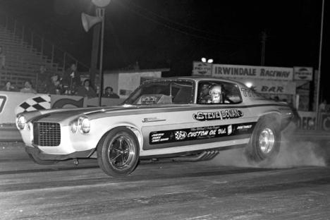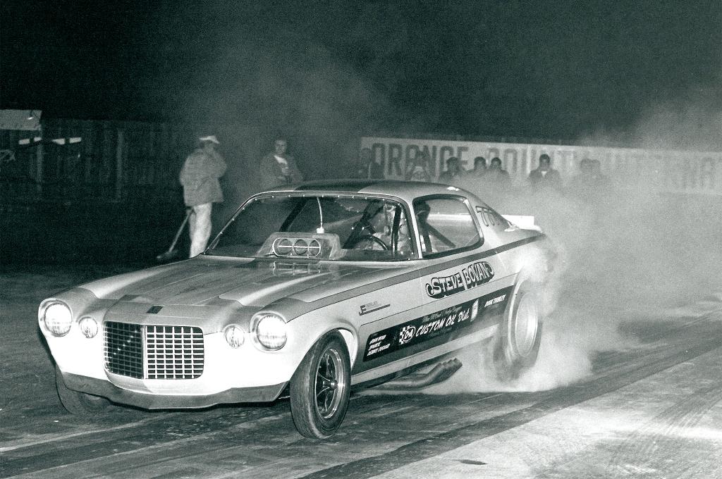 Notes: The last of Bovan's cars. The car ran occasionally from 1970 to 1972. Steve did drive for others from 1973 to 1976. Best of everything in the car resulted in decent times (low 7s and 200 plus). Steve moved to Costa Mesa in '71 and sold his old Camaro. He didn't race as much as he took jobs at a VW repair shop and, later, at a car customizing joint. He started to fall on much harder times as he was convicted for selling 1,200 lbs of marijuana. Things went downhill from there. Bovan fell on bad times with a bad group of people in the late 70s, which resulted in his demise. |