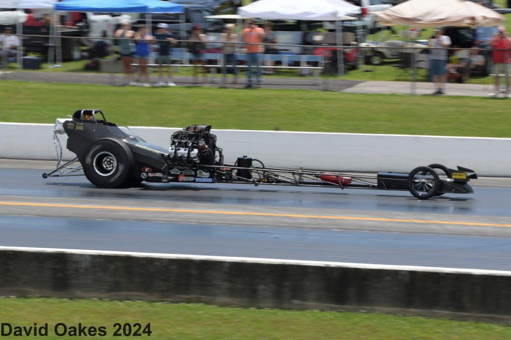 Notes: Larry was at OCIR on August 3 for an eight-car show. He qualified #3 with a 7.71/189.46. In the opening round, his 7.94/190.26 easily beat Roger Gates, who shut down early. In the semifinal, his 7.78/192.70 lost to eventual winner Jack Jones' 7.74/200. |