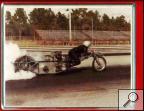 Notes: Article in 10/6/66 Drag Times has Bowker losing a match race to the Chevy-powered bike of E.J. Potter ("The Michigan Madman") at Motor City Dragway in St. Clair, Michigan. - RT | Info added by Dan Bowker 2/22/2014: Photo plus text: I hardly ever kept track of my ET or mph. Most of the time I ran the bike was for exhibition and just smoked most of the 1/4 mile and didn't get much traction with the old M&H tires. When I first started riding the bike I found out when it started to hook up it would raise the front wheel, so after that, when I felt the engine start to bough I'd just roll on more power and keep the tire loose. I learned that lesson the hard way. About the first time I made a hard pass, it hooked up, I pulled the chute, the bike stopped and I slid for 700 feet. I went through the lights on my, butt at 168.94 (I remember that pass). That was when I added the air dam over the front wheel. That fixed the problem and kept the forks pretty much squashed. So as long as I was not racing anyone I just let it eat. Most promoters just wanted to see smoke anyway. I built the bike in 1960 and ran it until about 1975 I guess. I was in Gainesville Fl. And tipped the can a tad too much and blew my cool injected motor to pieces. I sold it to a Friend here in Florida to restore it. He sold it to Bruce Della in Mass. I am not sure who has it now. I lived in Owosso, Michigan, when I built the bike and had Logghe Stamping Co. build the frame. I was one of the first to use a Crowerglide clutch. Thanks, Dan |