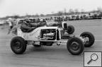 Notes: At Quad-City on Apr. 7, Bowles took top eliminator honors with 13.1 at 107 mph. The next week on Apr. 14 at Cordova, Bowles took top eliminator with 108.43 mph. On April 28 at Cordova, he took another top eliminator win with 110.9 mph. On May 26 at Quad-City he took top eliminator with 11.92 at 114.1 mph. On Oct. 13 at Quad-City, he took top eliminator honors with 11.92 at 119.21 mph. Earlier in the day he clocked 11.7 at 121.62 mph. Photo: "Mid 1950's drag photos, Moline IL," p. 1, in Jalopy Journal, The H.A.M.B. -- MB |
