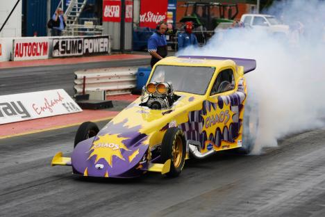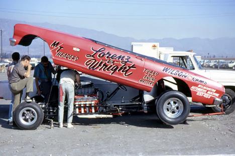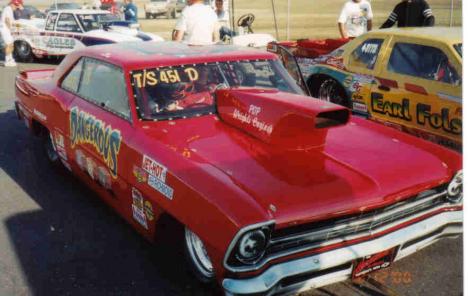 Notes: NHRA outlawed these topless Corvettes. That didn't keep them from running non-NHRA sanctioned events. Wright was at Lions on August 22 for an eight-car show. He failed to qualify but came out for a consolation race against Leroy Hales in the "Wild Breed." It wasn't much of a race between the two as Wright shut down to a 9.82 that lost to Hales' 7.43. The following week (August 29), he was at OCIR for another eight-car show. Once again, he failed to qualify, but he got in as an alternate. Unfortunately, he lost to Don Schumacher's 6.93/210 in the opening round. Johnny qualified for the eight-car field at Irwindale on September 12. In the opening round, his 8.15/183.66 fell to Frank Rupert's 7.97/153. Mike Gagnon information. |