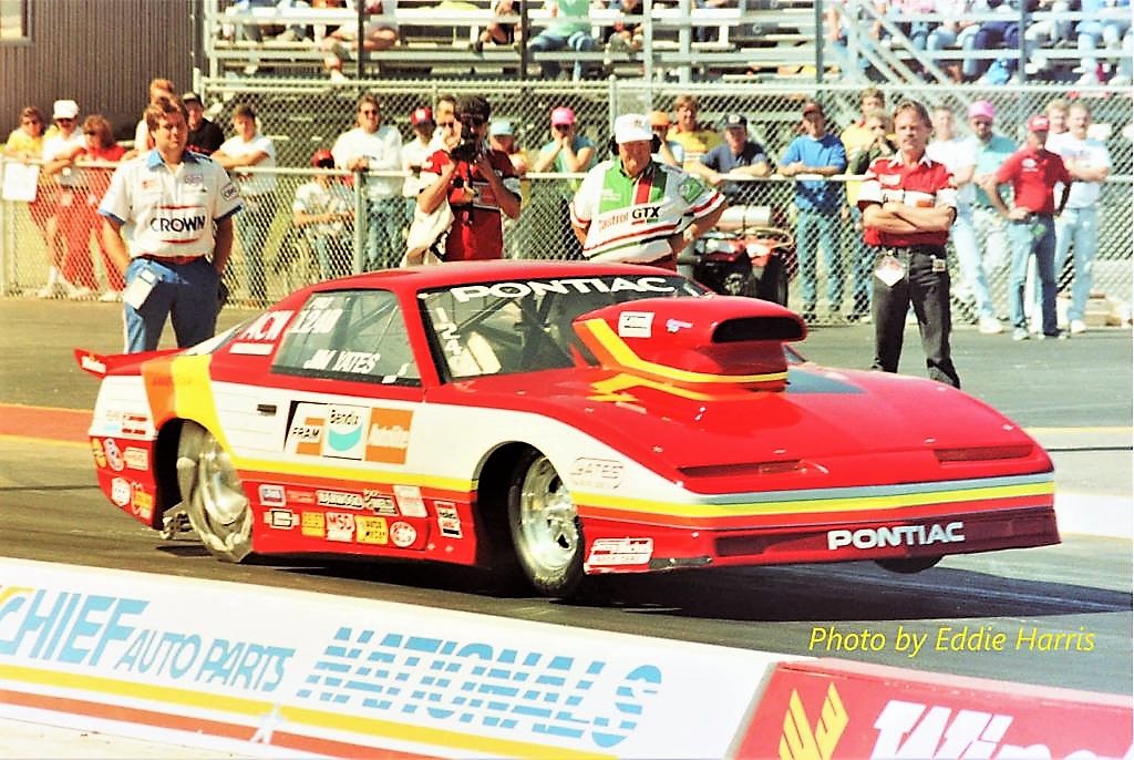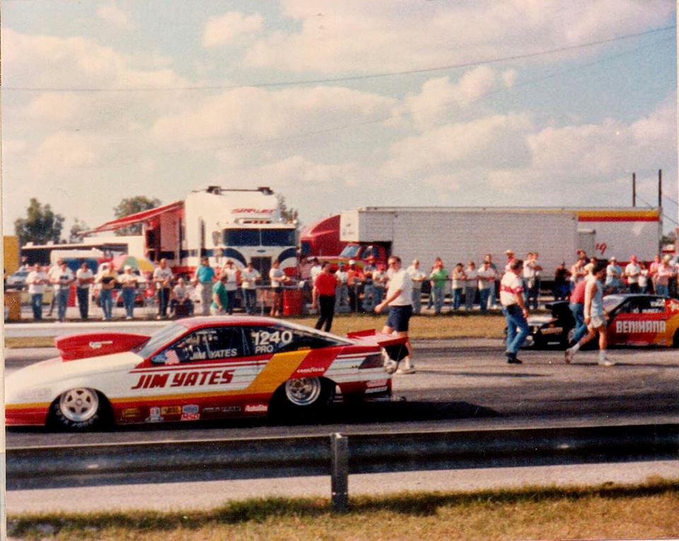 Notes: Photo from 1992 Gators. Jim started the season with a runner-up finish at Pomona for the NHRA Winternationals. He qualified #8 with a 7.24/191.57. In round his 7.27/190.51 stopped Harry Scribner and a 7.36/188.36 in the second round beat Mark Pawuk. He had a close race against Bob Glidden in the semifinals, but his 7.28/190.83 beat the Ford driver's 7.29/190. He faced Jerry Eckman in a all-Firebird final, but his 7.26/190.27 finished second best to Eckman's 7.19/192. At the NHRA Motorcraft Nationals in Arizona, a 7.27/190.07 qualified #6. Once again he ran well, beating Rickie Smith with a 7.29/188.60 and in round two, Yates' 7.43/186.52 advanced when Scott Geoffrion crossed the centerline. In the semifinals, an off-pace 7.39/187.53 lost to Don Beverley's 7.33/190. Houston was NHRA's next stop for the Slick 50 Nationals. There Jim qualified #8 with a 7.20/190.83. Another strong 7.21/190.39 advanced when Beverley fouled. In the second round his 7.24/189.19 lost to Bruce Allen's 7.21/190. Yates year took a turn for the worse at Gainesville for the Gatornationals. During qualifying the car failed fuel check. His gas was checked and registered +2.3 on the meter. Only a reading of 0 and lower were acceptable. He was suspended for the next four races. Yates appealed and was back in competition at Atlanta for the NHRA Southern Nationals. Unfortunately, his best of 7.33/188.75 was good for the second alternate. This went better at Memphis for the NHRA Mid-South Nationals. His 7.28/189.75 qualified #6 and in the first round, he beat Gordie Rivera with a 7.29/189.63. An off-pace 7.45/187.38 lost to eventual winner Warren Johnson's 7.32/190 in round two. At the NHRA Springnationals, Jim continued to qualify in the top half of the field with a 7.30/189.03 (#7). Another 7.30/188.56 in the first round, beat Allen's quicker 7.28/188. In the second round, he had problems and shut off to 7.94/151.26 in a loss to Geoffrion's 7.31/188. |