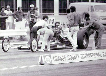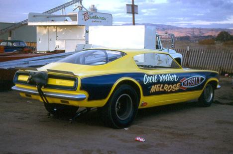 Notes: Cecil was at Irwindale on April 28 for an eight-car show. There was no qualifying as pairings were drawn from a hat. Dale Pulde fouled against him in the first round. He faced eventual winner Norm Cowdrey in the semifinal. Unfortunately, Yother had an oil filter explode on his run against Norm, and the car went into a fireball. Cecil brought it to a stop and was ok, but the car was messed up badly. Confirm that this car ran on nitro. 8.45 Lions Drag Strip. |