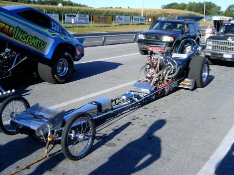 Notes: Check out the dual rear wing. Lee was in Atlanta on April 21 for the NHRA Southern Nationals. It was an eight-car field, and his 6.43/214.79 qualified #1. In the opening round, he slowed to an off-pace 6.92/194.30 that fell to Billy Williams' 6.57/208. A week later (April 28), he was at Indianapolis for the NHRA Division 3 opener. It was another eight-car show, and Lee's 6.52/212.26 qualified #4. He improved to 6.49/212.76 in the opening round to defeat Tony Zizzo's 6.56/209. But in the semifinal, he slowed to 6.91/207.85, which lost to eventual winner Butch Osmon's 6.60/205. He raced at Baton Rouge in May for the NHRA Cajun Nationals. A 6.51/212.86 qualified #3. Young had a close race with Kirk Lawrence in round one, that saw his 6,64/209.20 lose to Kirk's 6.62/211. His next stop was at Beech Bend for the NHRA Sportsnationals. He qualified right in the middle (eighth) of the sixteen-car field with a 6.56/214.38. In the first round, he fouled away a 6.62 against Doug McCan, who advanced at 7.63. | At the NHRA US Nationals, Young qualified #2 with a 6.412/215.20. He would defeat #10 qualifier Don Irvin in round 1 6.542/213.67 to 6.908/198.15. #14 qualifier Mike Kosky in round 2 6.540/214.38 to 6.657/194.21 & #16 qualifier Ken Murray in the semis with a 6.504/213.39 after Murray red lit. In the Final Young faced #1 Qualifier Bill Walsh. While Young was consistently in the 6.50s & did it again with a 6.525/216.03, It was a losing effort to the 6.40 consistent Walsh & his 6.428/215.41 time to the US Nationals Victory. |