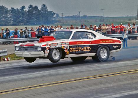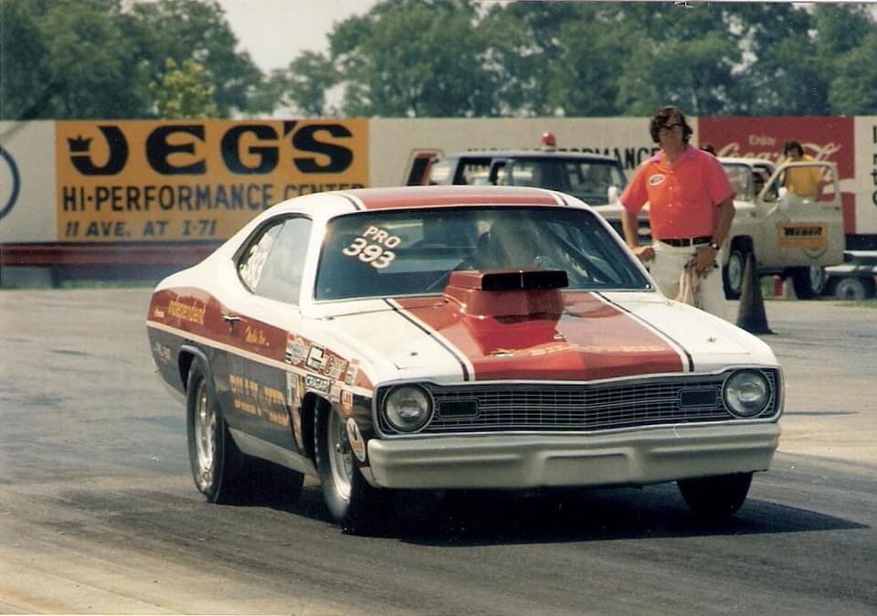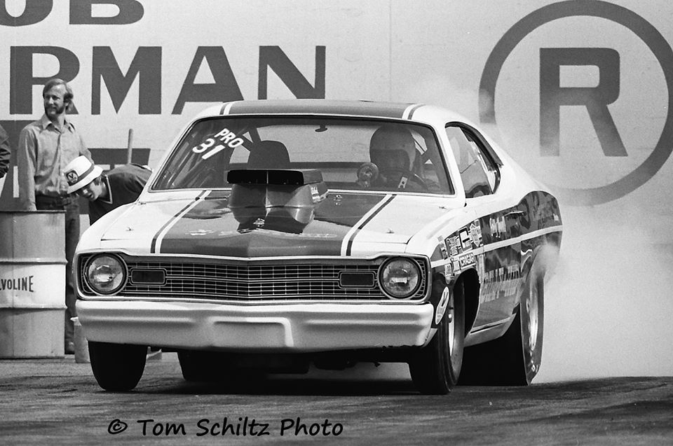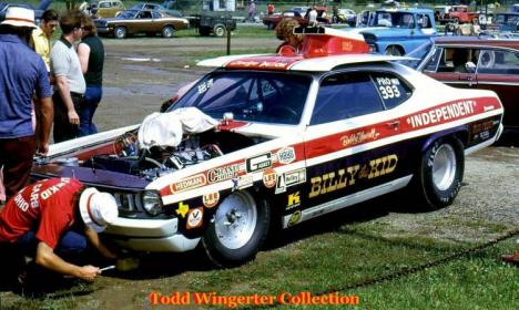 Notes: HAD 9 RACE ENGINES. It flipped over one time. Ran 8.85/152.28 at IHRA Bristol Spring 1976. Bobby had one of two Mopars that qualified at Columbus for the NHRA Springnationals. His 9.05 qualified #11. As luck would have it, the two Mopars faced each other in the first round. Yowell slowed to a 9.22/150 that lost to Roy Hill, who advanced with a 9.14/148 in his Plymouth Duster. Photo from Division 3 WCS, US 131 Dragway, Martin, Michigan. |
