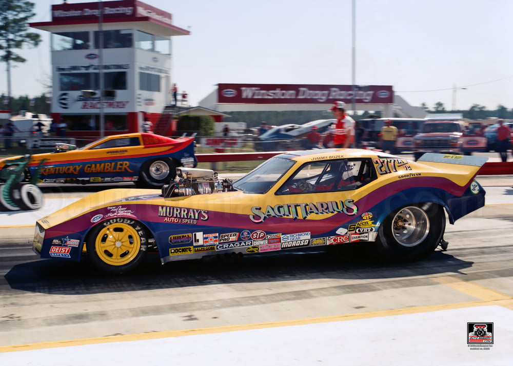 Notes: Rick Howard Alcohol Dragster Final Round photo from 1997 NHRA Pontiac excitement Nats, Columbus, Ohio. Qualified 7th at 5.73/240.32. Defeated Shawn Bowen (improved speed at 240.77), Mark Taliaferro (improved ET at 5.696, Randy Parks (again improved ET and speed at 5.692/241.74 and finally Darrell Russell for the title. |