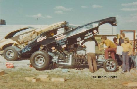 Notes: The photo was taken by a fan at SLIR. The car at this time was direct drive with no reverser. We used a Scheiffer 3-disc slider clutch and pushed it back after the burnouts. | Ran 6.87/245.3 according to handout. Bret said the speed came from Orlando, which was notorious for bogus speeds at times in the 70s. We will keep the 6.87 and look for a legit speed. |