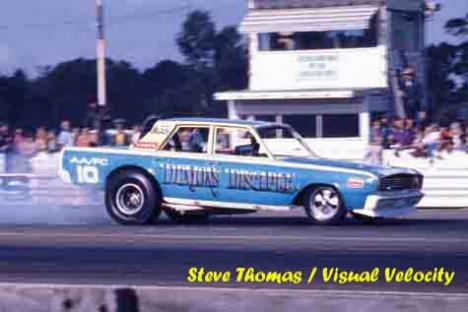 Notes: Began the 1977 season in this car, but eventually drove the Reher-Morrison Monza. Finished runner-up to Jenkins/Lombardo at the NHRA Phoenix Winter Open, losing to Lombardo's 8.80/154.37 with an 8.94/153.84. Retained finish number 7 in 1977. Photo from 1976, but same paint. |