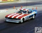 Notes: Kelly Brown did really well driving this car at its first major event, the NHRA Springnationals. He qualified #4 with a 6.904/208.33 and an opening-round 6.89/212.26 beat Leonard Hughes. In round two, he made an easy pass when Bobby Rowe failed to fire. In the semifinals, Brown set Top Speed at 218.97 (6.81) while defeating Henry Harrison in Mickey Thompson's now Chrysler-powered Mustang at a close 6.96/213. He faced low qualifier Don Schumacher in the final. Don had been running quicker in eliminations, but the final was close. Kelly stepped it up to 6.81 in a runner-up finish to Schumacher's 6.76/218. Early in July, he was at OCIR for its Nitro Championships. He ran his remarkable 227.27 in qualifying, at the time, the fastest run ever. In the first round, he beat Bob Pickett with a 6.91/213.27, but he fouled against Stan Shiroma in round two. A couple of weeks later, he was at Englishtown for the NHRA Summernationals. Only ten cars showed, so qualifying wasn't much of an issue, and Brown got the #7 spot in the field. Unfortunately, he blew the engine in the first round, and slowed to a 7.35/153 loss to Gene Snow's 7.05/196. Apparently, Kelly had some extra time on his hands on August 19 when he went to OCIR to test the new "Blue Max" Mustang for Harry Schmidt. Ed Pink was also there to see what the car would do. At Indy, for the NHRA US Nationals, a 6.731/221.67 qualified #6, but a troubled 7.32/212.76 in the first round, lost to Jim Dunn's 6.97/200. His next stop was at US 30, Gary, Indiana, the following week (September 10) for the Larry Reyes Benefit race. All nineteen cars made just one pass, with the lowest ET being declared the winner. Brown ran 6.93/220 to beat Dave Condit's 7.03/214 in the "LA Hooker." His time was the fourth lowest overall. He was runner-up to Jake Johnston at Amarillo's NHRA Division 4 final. Not long after this, Don Schumacher and then Pat Foster replaced him behind the wheel. Kelly drove the Mr. Ed Charger at NHRA Ontario. We formerly listed a 6.70 for Kelly. Removing that until we get confirmation. |