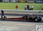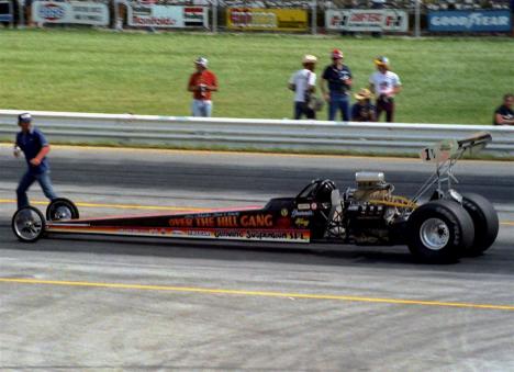 Notes: This car was completed on Saturday, November 18, and made one full qualifying pass at the NHRA Supernationals that same day. The resulting 6.70/210.00 run was not good enough to make history's quickest funny car field. Kelly qualified #14 at the Lions Last Drag Race on December 2 (times unknown). He broke against Billy Meyer in round one. Although initial runs were promising, handling problems, which were eventually traced to the poor aerodynamics of the Vega Panel body, kept this car from ever reaching its potential. Every Vega Panel tried in funny car was evil handling. A lack of downforce caused them to get loose on the top end, and many were lost in crashes. |