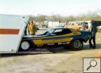 Notes: We had 4 different Funny Cars: Plymouth Satellite, Plymouth Arrow - Okie Smoker, Pontiac Firebird, Chevy Vette - Last Car. - Denice Helmke Brown. Photo from 1976. |