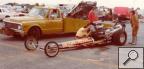 Notes: Brown was at Beeline Dragway in Arizona near the end of January for the AHRA Winternationals. It was a 32-car field, and he had the quickest Donovan qualifier at 6.18/211.76 (#3). His opponent, Dave Settles, lost fire in the "Carroll Brothers" car in the first round. Vic made an easy solo to advance. In round two, he beat Jerry Wilson with a fireballing 6.26/211.76. The team was done for the day. The team then went to Pomona for the NHRA Winternationals. The track was rough, and Brown ran 6.94/208.81 on the first weekend (February 3) of qualifying to take the #6 spot in the 32-car field. Rain interfered, and the race was rescheduled for February 18. Brown was unable to improve on his ET, but he did improve his speed to 218.80. He had been bumped back to #8 on the starting grid, but the team could not stay through all the rain delays and headed home before eliminations. Vic was at LaPlace Dragway for the NHRA Division 4 Opener. He qualified #2 in the eight-car field. In the first round, his 6.41/212.00 beat Steve Carbone, who exploded a supercharger. In the semifinals, he beat Settles with a 6.37/215.31. He faced Flip Schofield in the final, and he shut off with a troubled 7.34/124.00 while Schofield grabbed the win with a 6.74/216. He won the AHRA Grand American at Tulsa over a fouling Don Garlits. A couple of weeks later (April 29), he was in another final. This time it came at the IHRA Longhorn Nationals in Dallas. This one came with some controversy. Brown ran 6.23, 6.22, and 6.18 to beat Joe Haggerty, Dale Funk, and Settles (in that order). In the final, he went up against Leroy Goldstein, driving the "Candies and Hughes" car. The Christmas tree malfunctioned, and Goldstein shut off while Vic ran 6.17 for the apparent victory. But IHRA officials called for a re-run. Car owner Bob Creitz refused. Goldstein then made a single for the victory. Vic did appear in the final but on foot. In May, the team attended the AHRA Grand American at Green Valley Raceway. It was a sixteen-car field, and Vic lasted until round two, where his 6.48 lost to Settles' 6.32. The AHRA Springnationals was run at Denver, Colorado's Century 21 Raceway on June 3. Vic qualified #6 in the sixteen-car field with a 6.68. He beat Dan Rightsell in the first round before losing to Dan Richins in round two. Brown was at Lubbock Dragway in Texas for the NHRA Division 4 race. He qualified #1 and, in the first round, set Low ET with a track record 6.46 at 216.87 in beating John Wiebe's 6.61/209. Unfortunately, he lost to the eventual winner, Goldstein, in the semifinals. The team was at Englishtown for the NHRA Summernationals, where a 6.192 qualified #5. Vic beat Dick LaHaie in round one, with a 6.29/217, and in round two, his 6.32/224.43 beat Bill Wigginton's 6.39/197. But in the semifinals, the car broke against Jim Bucher. The best NHRA times were 6.192 at the Summernationals and 230.76 at Indy. Bret Kepner - 1973 AHRA Gateway Nationals at St. Louis International Raceway. Top Fuel Eliminator, Qualifying. Vic Brown, in the former Don Moody dragster of Bob Creitz and Lyle Dill of Tulsa, OK, was the eighth qualifier at 6.57/206. 6.277 228.42 NHRA Indianapolis, IN 9/01/73. Photo from the 1973 NHRA US Nationals, Indianapolis Raceway Park. Set track record 6.46 at high altitude Amarillo Dragway during the WCS meet on 6/17/73. Was their best ET with a 392 or 426 Chrysler? |