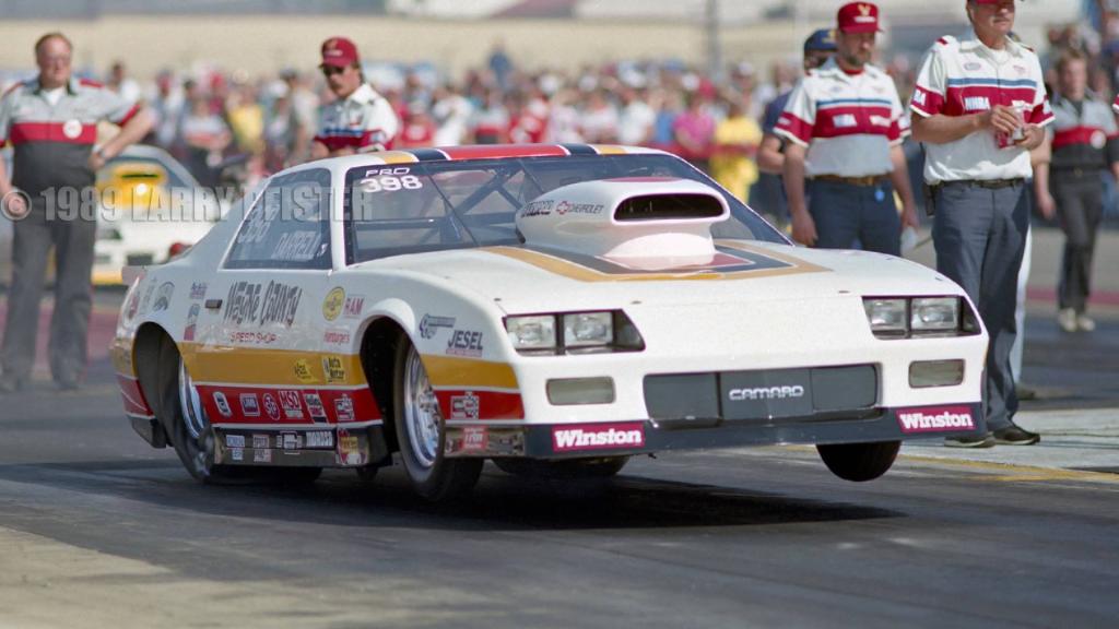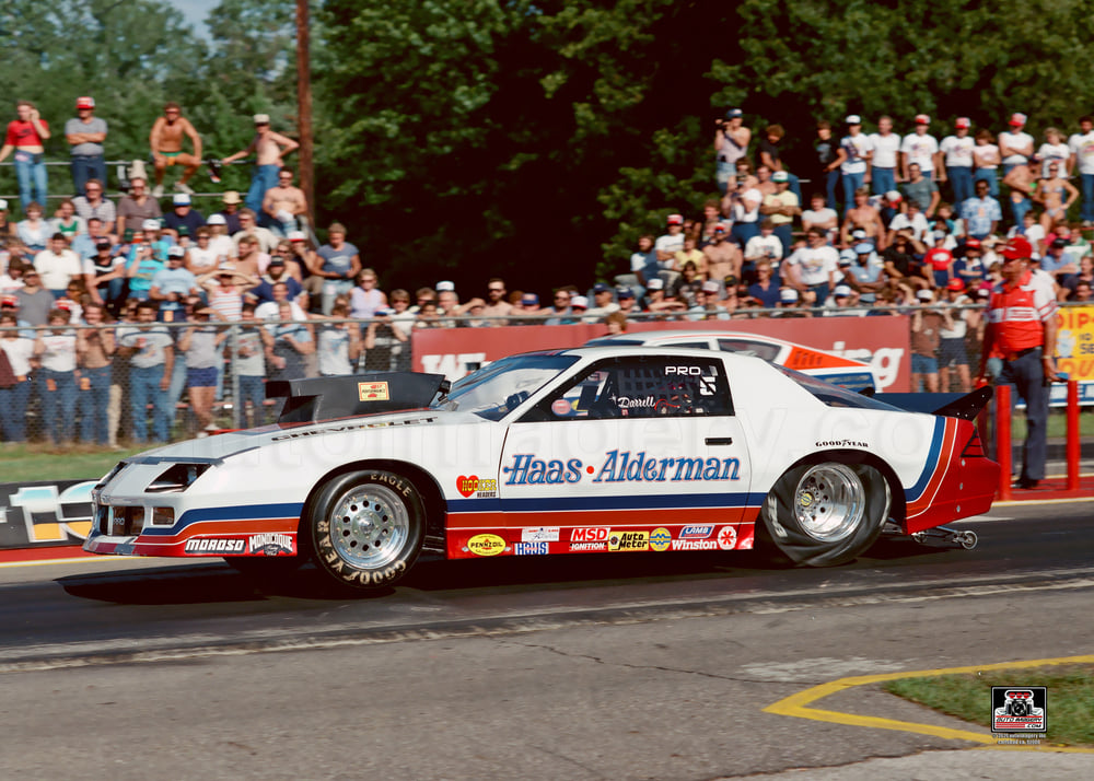 Notes: Original pre-Internet draglist entry. Listed times from The Drag Racing List December 86/January 87, Volume 1, Number 9. | Darrell's first NHRA national event of '86 was at the Texas Motorplex for the Chief Nationals. He qualified #5 with a 7.57/182.37. A first-round 7.61/181.19 beat Tony Christian's 7.68/181. In the second round, the Camaro broke, giving Bob Glidden a solo into the semifinals. The next race was the NHRA Fallnationals, and once again, Alderman qualified well, running a 7.62/181.21 for the #8 spot in the show. He beat Lee Dean's 7.70/175 in the first round, with a 7.65/179.96. In round two, another 7.65 at 180.25 beat Warren Johnson's 7.87/180. Unfortunately, he fouled away a 7.63 in the semifinals against Dempsey Hardy. At the season ending NHRA World Finals, a 7.57/182.00 qualified #7. He beat Frank Iaconio's T-Bird in the first round, with a 7.60/180.83. In round two, Bruce Allen sent him packing with a 7.56/183 that nosed out Darrell's 7.58/180. Those were the only three NHRA races that Alderman ran in '86. Even with those limited runs, he managed to finish 22 in NHRA's points chase. Darrell ran all kinds of 7.40's on the IHRA circuit this year in the Jerry Haas Camaro, but none in NHRA trim. |