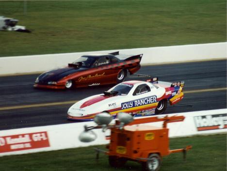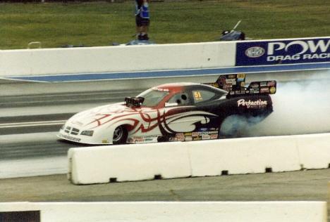 Notes: Randy raced at three events in 1999 with great success at the Joliet event. He also may have run the family funny car at some of these. We need to validate. Randy was the third alternate at the Winternationals at 5.730/257.33. He qualified #16 at Phoenix at 5.382/266.69 and lost to John Force in round one, 4.98/301 to 5.123/294.56. He qualified #5 at Joliet (definitely in the Gibbs car) at 4.986/306.53. In round one, he beat ron Capps, 5.014/295.34 to 5.18/282. Randy took out Del Worsham in round two, 4.988/286.07 to 5.39/203. He had a thrilling race with John Force in the semis, but he lost a close 5.003/298 to 5.006/292.84 decision to the champ. That was Randy's last national event of the year. |