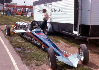 Notes: Owner killed mid-April 1977 while testing engine in a gravel pit in Pewaukee, Wis. (a Milwaukee suburb). Anderson, normally the driver, was present. Owner Hehn was in the cockpit as they tried to sort out some problems with the propulsion unit. The "throttle" apparently stuck and the car hurtled into a wall of gravel at an estimated 140 mph, killing Hehn. The car was subsequently sold to funny car driver-turned-rocketman Fred Goeske. - RT |