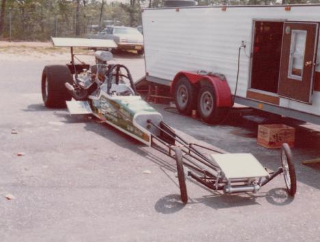 Notes: Walt "Satch" Nottle. Charlie Greer's Phila., Pa., S&W chassis 392 powered rear-engine AA/FD. Driven by Satch Nottle in 1972. - Bill Warburton, 4/15 | Satch ran 6.97 at Maple Grove, but we need to confirm the car. Photo from 1974. |