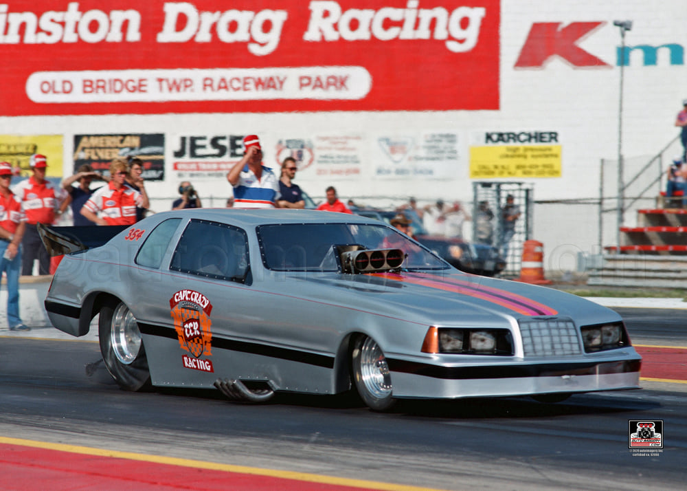 Notes: The T-Bird debuted at the Grandnationals in Sanair at the end of June. Only fifteen cars showed, and Ron's 5.82/252.38 qualified #7. In the opening round, he struggled and shut off against Mark Oswald. The following week, he was in Milan, Michigan, for the IHRA Northern Nationals. The car was still unlettered and wearing black primer. He qualified #14 and ran an easy 5.97/249.30 in the first round to advance, while Kenny Bernstein could not show due to a fire during qualifying. In the second round, Ron lost to Tom McEwen. At the NHRA Summernationals, Correnti qualified #13 with a 5.81. He had problems in the first round against Dale Pulde and shut off. His next stop was at Bandimere for the NHRA Mile High Nationals. Ron qualified #13 with a 6.13/241.93 in the thin air. In the first round, he lost to Rick Johnson in the "Hawaiian." This car's career ended at Edgewater during the IHRA Summernationals in August. It caught fire during qualifying, and the T-Bird's body was destroyed. Ron was not hurt. IHRA number was 154. We previously listed 5.71 for this car, but his best NHRA national event times at the World Finals were 5.779/253.52. We are removing the 5.71 until we get confirmation. |