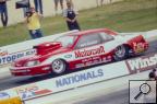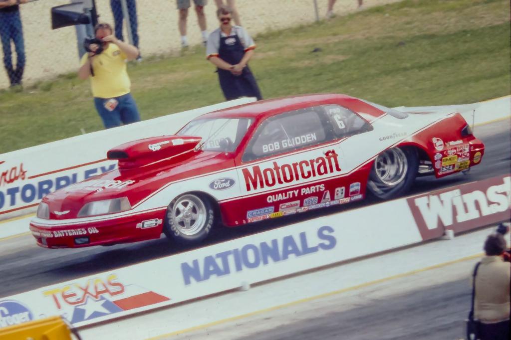 Notes: Set national record twice in 1988: 7.319 at Seafair Nats, then 7.277 at Super Nats. Also, 7.318 at IHRA Ennis. Just heard of Glidden's passing (December 2017). It's hard to believe. Because of him, I became interested in drag racing. He was an amazing, hard-working individual. So, I had to do a Glidden entry. After a great'87 season, Bob followed it up with another championshipin'88. The season didn't start well for the NHRA Winternationals at Pomona. It started OK when he set Low ET and Top Speed in qualifying #1 with a 7.39/189.27, but he was upset by Morris Johnson Jr. in the first round. He then went to Darlington for the IHRA Winternationals, where his 7.376/188.67 qualified #1. A first-round 7.39/187 beat a fouling Carlos Gonzalez, and a 7.45/187 in round two beat Terry Adams. He moved into the final by running a 7.42/187 in the semifinals to beat Tim Nabors. In the final, he was up against the Ford mountain motor of Rickie Smith. The two Motorcraft-backed T-Birds had a good battle, but Smith's 7.39/190 came out on top over Bob's 7.43/185.56. At the IHRA Supernationals, he qualified #4 and ran 7.47 and 7.56 to meet Smith in the semifinals. Once again, Rickie had Bob's number, with a 7.41/189, beating Glidden's 7.49/187. He had more bad luck at the next NHRA race, the Gatornationals, where he only qualified #11 with a 7.40/189.31. Bob smoked the tires in the first round and shut down to a 7.67/177 loss to Kenny Delco. He qualified #1 at Atlanta for the NHRA Southern Nationals with a 7.47 (Low ET). Bob lasted until the second round before he got out of shape and shut off against Tony Christian. Bob then won the IHRA Texas Nationals. He qualified #1 with a 7.31/189.43, and in round one, his 7.36/187 beat Gonzalez. In the second round, a 7.32/187.03 beat Adams' 7.42/186, and in the semifinals, he reset IHRA's record to 7.30 at 189.27 while beating Smith's 7.33/190. A final round 7.31/184.50 sewed up the victory over Tim Nabors' 7.36/188. At Memphis for the Mid-South Nationals, a 7.46 qualified # with a 7.46, and had the top speed of the meet at 188.29. But after beating Alban Gauthier in the first round, he again lost to Christian in round two. It was then off to Bristol for the IHRA Springnationals. Glidden qualified #2 and lasted until round two, where his 7.54/184.27 lost to Johnson Jr.'s holeshot 7.58/182. NHRA's fifth race of the year was the Cajun Nationals in Baton Rouge. Johnson Jr. stopped Bob in round two. Another win came at the IHRA Summernationals at Atco. He set Low ET in qualifying #1 with a 7.316 190.27. Bob beat Dempsey Hardy in round one, and in round two, his 7.37/187.89 beat Delco's 7.47/185. A semifinal 7.36/187.89 took out Frank Iaconio and set up another all Motorcraft T-Bird final with Rickie. Bob got the victory with a 7.37/187.50 over Smith's 7.46/188. It was surprising that Glidden hadn't reached the semifinals in the first five NHRA races, but he changed all that at the Springnationals. He qualified #1 with a 7.44 and beat Johnson Jr. in the first round and Nick Nikolis in round two. This put him in the semifinals for the first time in '88, where he faced Joe Lepone Jr. A 7.46/186 put Joe on the trailer, and Bob moved into the final, where he met Bruce Allen in the Reher-Morrison Beretta. Bob set Low ET of the meet with a final round 7.42 at 188.08 to beat Allen's 7.49/186. He then went to Canada for the NHRA Grandnationals, where his 7.37/188.75 qualified #2. But in the first round, the car got out of shape, and Bob lost to Christian. The shit hit the fan at Milan for the IHRA Northern Nationals. Bob qualified #2 with a 7.47, behind Allen's 7.46. After hitting the scales after a qualifying run, one of the IHRA officials told Glidden that they would pull a head and check for nitrous. Bob said that was fine and to meet him at his trailer to do it. The official said no, that they were going to do it right there. There was no way Glidden was going to pull a cylinder head at the scale in front of all the Pro Stock teams. Once again, he stated he would gladly let them pull the cylinder in his trailer. At this point, another official walked up and told Bob to leave and not come back. So, Glidden and his family started packing up to leave. Just before they were ready to pull out, another official came by and said that they decided to check the engines in the trailers. Glidden told him it was too late and that they were leaving. Glidden was not alone; the Reher and Morrison team also packed up and left after being asked to pull a head at the scales. The owner and president of IHRA, Billy Meyer, was asked why he thought the top two qualifiers left, and he responded, "They were probably cheating." Both teams were banned from any further IHRA events in 1988. Later, Meyer denied saying that and said, "There's doubt in my mind they weren't cheating." It was a bold move by Glidden to pull out, since his sponsor, Motorcraft, also sponsored the race. Bob would never race at another IHRA event. He had 20 victories in IHRA competition and was the organization's '86 Pro Stock world champion. After that fiasco, he went to Englishtown for the NHRA Summernationals. He ran Low ET and Top Speed in qualifying #1 with a 7.3 at 188.1 mph. In round one, a 7.49 beat Dempsey Hardy, then beat Delco and Mark Pawuk to reach the final. He ran Jerry Eckman in the final, and Bob's 7.46/185.91 got the victory over Eckman's 7.54/183. Another win followed at Seattle early in August for the NHRA Seafair Nationals. He qualified #1 with a track record (and NHRA record) of 7.31 at 189.59 (Top Speed). He ran 7.3s throughout eliminations. A 7.35/189 beat Eckman in round two, and a semifinal 7.37/188 beat Butch Leal. This time, his final-round opponent was Warren Johnson. Bob took the win with a 7.37/188.52 over Johnson's 7.42/186. Photo from Milan, Mich., 1988. |