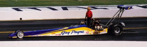 Notes: Sonoma winner qualified #5 at Indy with a 5.688/244.83. He had not won a single round in Indianapolis in 11 years. Defeated Mike Troxel in round one, with an improved 5.681/246.44, took a holeshot win over Richard Boyd in the quarterfinals, and dumped Bill Ancona to reach the finals. Red-lighted away a win against Bobby Taylor to end his day. Ran 5.645/248.96 at Slick 50 Nats. Rick Howard photo from the 1996 US Nationals in Indianapolis. |