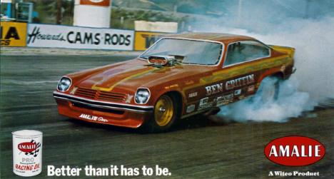 Notes: Ran 6.97/197.98, 6.98/193.96, 7.00/196.97 at Irwindale 64 Funny Car Race. | My last BB/FC. Chevy engine by Dale Armstrong. 6.97 at 197 mph in 1975. The former Sam Harris Vega, of Chaparral Trailer fame. - Ben Harris, 2/18 | (should this quote be from Ben Griffin?) JM |