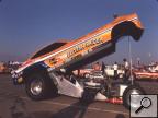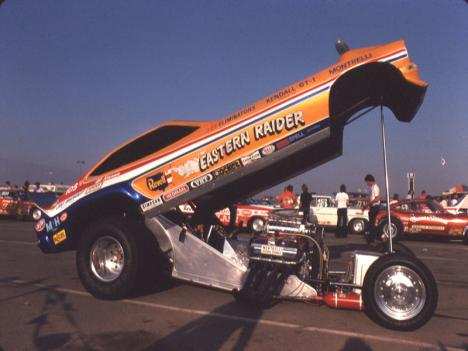 Notes: While still partners and running the "Eastern Raider" Pinto in 1974, Al Hanna and Joe Mundet commissioned Rollie Lindblad to build them a new Mustang II as a replacement for the old car. The new Mustang II made its debut in October at the 1974 NHRA Supernationals/World Finals at Ontario Motor Speedway with Al Hanna driving. In late '74 or early '75, there was a split in the partnership when Joe Mundet decided to move to California, and Al Hanna returned to Connecticut. Joe kept the new car and hired Dale Pulde as his driver, while Al continued campaigning the old Pinto; both cars kept the name "Eastern Raider." So, at the beginning of 1975, there were two "Eastern Raiders": the Connecticut-based Pinto and the California-based Mustang II. Dale Pulde was successful early in '75 with the western "Eastern Raider" Mustang II. After not qualifying at the NHRA Winternationals (first alternate at 6.504/211.76), he went on to win the Bakersfield March Meet. He qualified fourth at 6.39/208.81 and ran ETs of 6.63, 6.46, and 6.71 before beating Don Prudhomme in the final. Dale used a 6.53/196.63 to defeat Don's off pace 7.17/141.28. | Dale finished second in 1975 IHRA points to Raymond Beadle. But he drove Larry Christopherson's Arixona Wildcat Vega for at least some of those races. Dale was the fifth alternate at NHRA Columbus (no times available), but we need to confirm which car. |