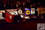 Notes: Rick was driving for Crossley on March 20 for an eight-car show at Irwindale. He qualified #4 with a 7.73 and ran 7.61/203.16 and 7.64/203.16 in the semifinals over Mike Snively in the "Hawaiian." In the final, his 7.75/208.32 (Top Speed) finished runner-up to Dave Beebe's 7.54/205. He was runner-up again, this time at a sixteen-car show at Irwindale on April 23. Stewart qualified #3 with a 7.79 and ran a first-round 7.80/212.26 over Dave McKenzie. An 8.39/137.63 advanced past the second round when the Wilton and Doss car lost fire. In the semifinals, he was sharp on the lights as his 7.71/213.28 (Top Speed) beat Snively's quicker 7.58/206 in the "Hawaiian." Unfortunately, the car lost fire in the final giving Jim Dunn an easy 8.73 victory. The following day (April 24), he was at Pomona for a Pro Fuel Circuit race. It was a sixteen-car show and he lasted until round two where his off-pace 8.21 lost to eventual winner Tom McEwen's 7.75. Stewart was at Irwindale on May 7 for an eight-car show. He set Top Speed with a 7.99/213.28 in qualifying. It was good enough for the #8 spot in the field. He picked up to 7.84/179.64 in the first round, but it wasn't enough as Dunn's 7.63/209 beat him. A week later (May 14), he returned to Irwindale for another eight-car show. A 7.81 qualified #4. In the first round, he was sharp on the 'tree as his 7.85/203.60 beat Zane Schubert's quicker 7.72/209. But in the semifinals, "Fireman" Jim stopped him again. Dunn's 7.68/204 beat Stewart's 7.83/205.00. At the HRM Championships at Riverside, Rick used a 7.62/209.30 to qualify #12 in the 32-car field. He lasted until round two when McEwen stopped him with a 7.43/195 to his 7.69/207.84. On June 25, Rick was at Irwindale for an eight-car show. He qualified #4 with a 7.65. In the first round, Stewart's 7.69/210.76 beat Ron Goodsell's 7.78/200 in the "Imperial." Rick had a little nap on the line in the semifinals with his 7.73/205.00 losing to Danny Ongais' 7.81/200. |