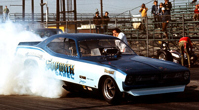 Notes: We need to confirm that they actually ran a Camaro body on the car. Or did they go from the Cuda to the Mustang? Who ran 7.37/196, Thermos or Ron Rivero? Was Jim Terry involved? | Per the 70’s Funny Cars website, info supplied by Gordon Swearingen, the Sopwith Camel Cuda owned by Mike Thermos and Jim Terry... Thermos supplied the body and chassis, Terry the engine and Gordy Swearingen drove after a short stint in the cockpit by Ron Rivero. According to Gordy, the Fletcher chassised car qualified at all the events it entered, but "didn't set the world on fire." Team stuck pretty close to its SoCal home; furthest trip from home was AHRA Winternationals in Phoenix. During this same time period Thermos was trying to get Nitrous Oxide Systems (NOS) up and running... the car was campaigned less frequently than the rest of the team would have liked so in 74 Terry and Swearingen left the Camel camp and debuted a Mustang flopper... Camel was sold to Div 6 racer Joe Clement, ran with a Cuda body through 75 before being rebodied as a Monza. JM |