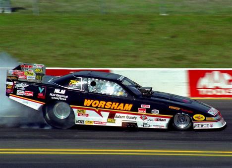 Notes: Worsham qualified #10 at Pomona for the NHRA Winternationals with a 5.23/269.62. In the opening round, he improved to 5.084/291.73 to beat Jim Epler's 5.61/199. The car broke against Kenji Okazaki in round two. He qualified #15 at Firebird Raceway for the NHRA Arizona Nationals with a 5.40/266.50. A much-improved 5.22/289.66 stopped Al Hofmann's 5.59/206 in the first round. Unfortunately, he lost a blower belt in round two and slowed to 5.25/264.62 in a loss to eventual winner, John Force's 5.23/285. He then went to Houston for the NHRA Slick 50 Nationals, where he ended up as the second alternate at 5.48. Major fire at Gatornats, got burnt. Freddie Neely finished out '94 in Del's car, but Del went on to drive Top Fuel. Photo from the 1994 NHRA Gatornationals, Gainesville, Florida. |