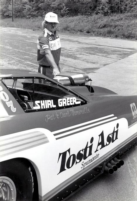 Notes: At the IHRA Loctite/Nationwise World Nationals, Greer ran 8.165/65.84, which was only good for 6th Alternate. | This B&W photo from Bristol Dragway at the end of the track by Dave Gillespie. He took a series of pictures of the car and of Shirl. This was Shirl's return to driving after he was forced into retirement from the subsequent fire at his garage from a lightning hit. Kind of a spooky scenario, being that his championship car from the seventies was Chain Lightning. These B&W shots are really good. Some of them have a really good perspective of the driver behind that mammoth B-4 overhead cam motor we ran. Shirl loved the power it produced. He mentioned once, while talking to Bret Kepner from ESPN, that he felt the torque it produced right up through the frame rails. The original driver, Carl Fumerelle, had the same feeling of the Batten motor. It was a pleasure to see Shirl drive the car. He likened it to a Sunday drive in the old station wagon. He was that comfortable. I wish we could have done more with Shirl. He is truly one of the best drivers ever and truly one of the original southern gentlemen. The color photo is from Milan Dragway in 1989 at the Northern Nationals. I do not know who took this photo. It's nice though. If the photographer has any more, please contact me. If you were on the outside looking in (as a fan or spectator), you would only see what happens in front of you. But if you come from the inside (other teams, drivers, owners, and engine builders), there is a whole different perspective on what we tried to do. Any new design is going to have inherent concerns. Especially if it is a whole new idea right out of the box. No data on fuel demands. No data on valve train weight. No data on piston speed in conjunction with spring pressure. No data on blower configuration. No data on cam design, fuel, or air flow. No data on camshaft harmonics at high rpms. These are all things that you try to figure into the operational product, but until you feed the monster and light her up, you really don't know what happens when the cage is opened. We found out, sometimes as an embarrassing shutdown, sometimes as a fire, and sometimes with total destruction of components. Don Garlits told me one day when he was studying the car: "Never give up on your dreams, and never let the guys upstairs stop you from progress. After all, all of us got here because of someone's idea. Hey, I'm Don Garlits, and if I wanna put rubber bands on my front end as tires, well, they won't stop me because I've tried everything." - Phil Bloom |