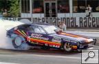 Notes: Won AHRA Winternationals 1972. | At the end of June through the July 4 weekend, I ran nine races in 14 days! Set the track record at Beech Bend at 6.45/220.04 over the July 4 weekend. - Dale Pulde, 7/3/15 | Pulde started the season with a win at the AHRA Winternationals at Beeline, but he had to beat the "killer car" of the day not once but twice to get the victory. Dale ran a 6.71 in the semifinals to beat Pat Foster's 6.72 in the bucks-up "Barry Setzer Vega." Leroy Goldstein won the other semifinal race but broke and could not make the final. That meant that Dale would race Foster again for the title. Dale won that final with a 6.68 over Pat's 6.85. The MT Pinto was at the Lions Grand Premiere race, and Dale beat Bill Leavitt's 7.11 in the first round, with a 6.79/215.82, but he lost in round two. At Pomona for the NHRA Winternationals, once again, Pulde met Foster. It happened in the semifinals, and they both smoked the tires, with Dale's 7.57 beating the Vega's 7.78. In the final, he ran Ed McCulloch, and the Pinto lost a motor, giving Ed the victory. The team was at Lakeland on March 6 for the IHRA Winternationals. A 6.96 qualified #6 in the field. He beat Charlie Wilson in the first round with a 7.02, and in round two, he beat a crossed-up Jim Liberman. A 7.15 beat Preston Davis in the semifinal, and he found himself in another final round. Unfortunately, he crossed the centerline in the final, and Richard Tharp in the "Blue Max" won. Dale lost in the second round to McCulloch at the AHRA Pro-Am race at West Palm Beach. Pulde had one of the four cars competing at Chandler Raceway in Indiana late in April. He did well, winning his races and reaching the final round against Clare Sanders, driving the "Chi-Town Hustler." Dale got the jump and looked like he had this one in the bag when the car suddenly got out of shape and almost went off the track and into the grass. He obviously had to shut it down and watch as Sanders roared past. He was at Rockingham on April 30 for the IHRA Pro-Am Championships. It didn't go smoothly for the MT team, as they lost two engines. The second engine let go while winning his second-round race, and he could not run against Foster in the semifinal. Pulde was one of 22 cars attempting to qualify at the IHRA Longhorn Nationals at Dallas. His 6.84 qualified #6, and in the opening round, he singled with a 6.70 when Charlie Therwhanger lost his 'chute on the line. In round two, he improved to 6.53 at 205.47 to beat Jake Johnston's 6.95/202, but in the semifinals, the Pinto lost a rear end, and eventual winner Tharp soloed into the final. The team's next stop was at Bristol for the IHRA Springnationals. Dale qualified #13, and in his first-round meeting with Gene Snow, the car kicked off its blower belt while Snow made for the big end. He was at Rockford for the East-West meet, and it was an unusual 12-car show. Twenty-four cars attempted to qualify, and Pulde's 7.20 got him the #9 spot. Unfortunately, he failed to reach the finals there. Things went well at the AHRA Marathon Nationals in Marion County in July. There was even a little bit of lady luck riding on their side as in the semifinals, Don Prudhomme beat Pulde but lost a motor while doing it. In the final, Pulde was reinstated to run Leroy Goldstein driving the "Candies and Hughes" car. It was a close race, but Dale's 6.88 nipped Leroy's 6.89 for the gold. |