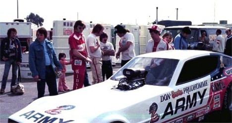 Pat Foster, Bob Brandt, and Don Prudhomme confer about the Army Arrow. Photo by Robbie Robertson